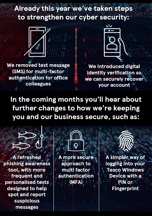 To create a distinctive visual identity for Tesco Cyber Security communications, we developed bespoke background animations and icons. This helped the campaign stand out, adding excitement and engagement while staying true to the master brand guidelines.